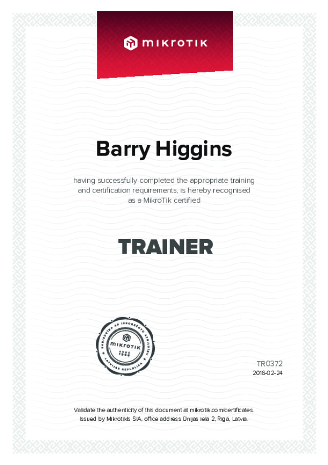 In recent years we have focused some of our time in learning and understanding networks constructed with Mikrotik products. To date, courses and training have been taken to obtain industry recognised certification resulting in 5 qualifications so far.